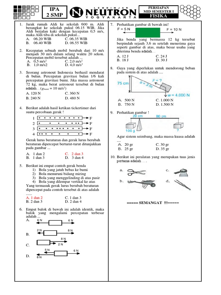 Soal Pilihan Ganda Fisika Smp Kelas 7 Tentang Gerak Lurus