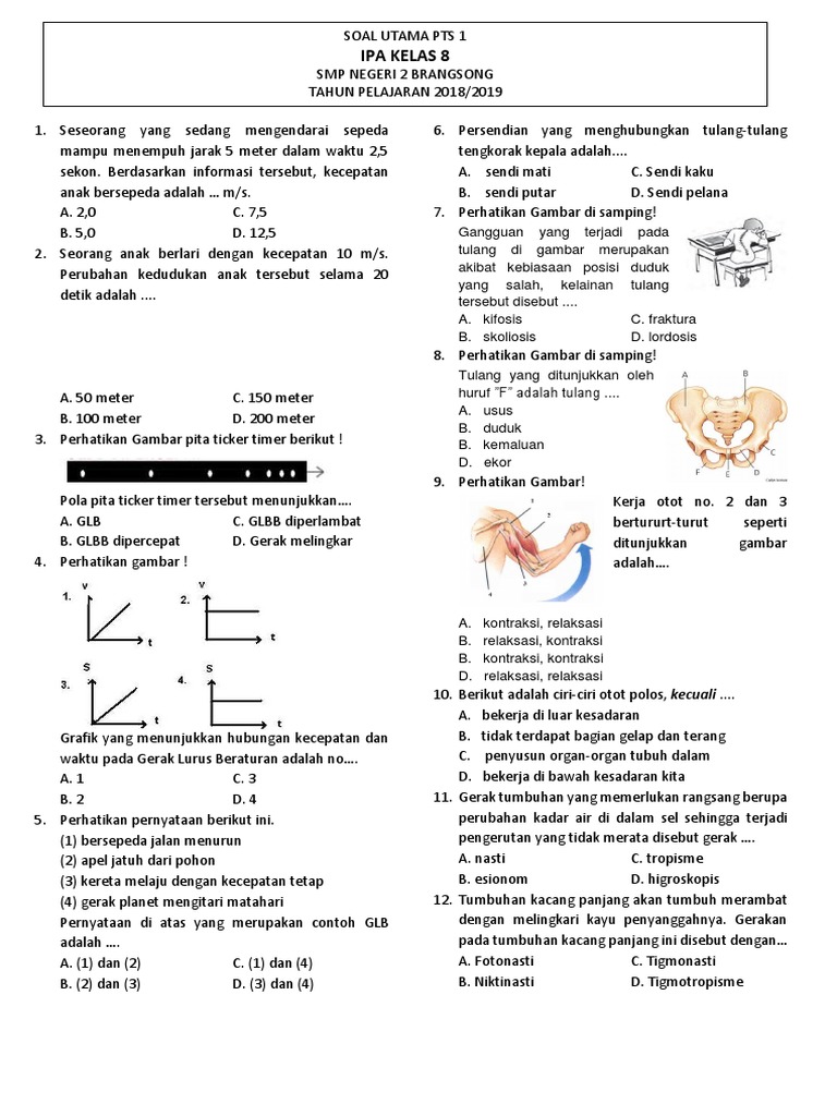 Soal Penilaian Tengah Semester Pts 1 Ipa Kelas 8 Smp